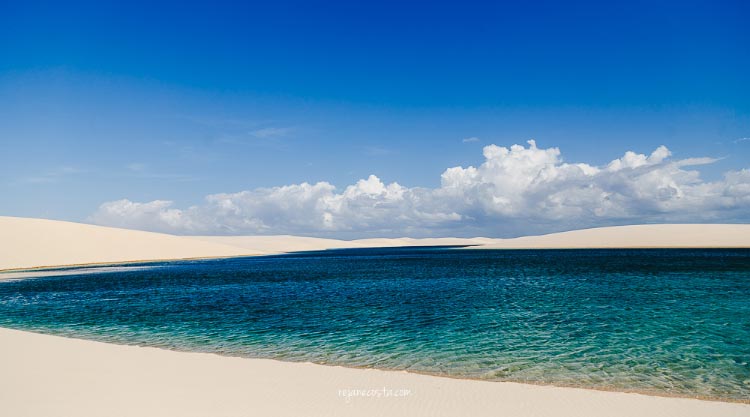 Paisagens paradisíacas, areia branquinha e lagoas de águas cristalinas e refrescantes.